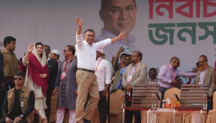বি এম শফিকুল ইসলাম টিটু, সিনিয়র চীফ রিপোর্টার: বাংলাদেশ জাতীয়তাবাদী দলের (বিএনপি) চেয়ারম্যান তারেক রহমান দেশবাসীর প্রতি আহ্বান জানিয়ে বলেছেন, ‘কোনো কোনো বিশেষ মহল নির্বাচনকে বাধাগ্রস্ত করার ষড়যন্ত্র করছে, সতর্ক থাকুন।’ শনিবার ৩১ জানুয়ারী বিকেলে টাঙ্গাইল মহাসড়কের দরুন-চরজানা বাইপাস এলাকার নির্বাচনী জনসভায় প্রধান অতিথির বক্তব্যে বিএনপি চেয়ারম্যান এ আহ্বান জানান। বিকেল সাড়ে ৫টায় মঞ্চে ওঠেন তারেক রহমান।
